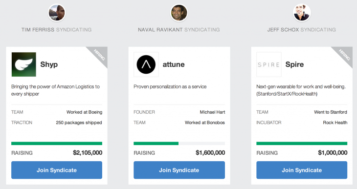 The crowdfunding site is also moving forward with the Syndicate and Backer programs that it has been testing. Syndicates allow an investor to commit to funding a company and then bring on co-investors to participate, effectively creating a mini-VC fund. Backers sign on to invest in future Syndicate deals from a specific investor.